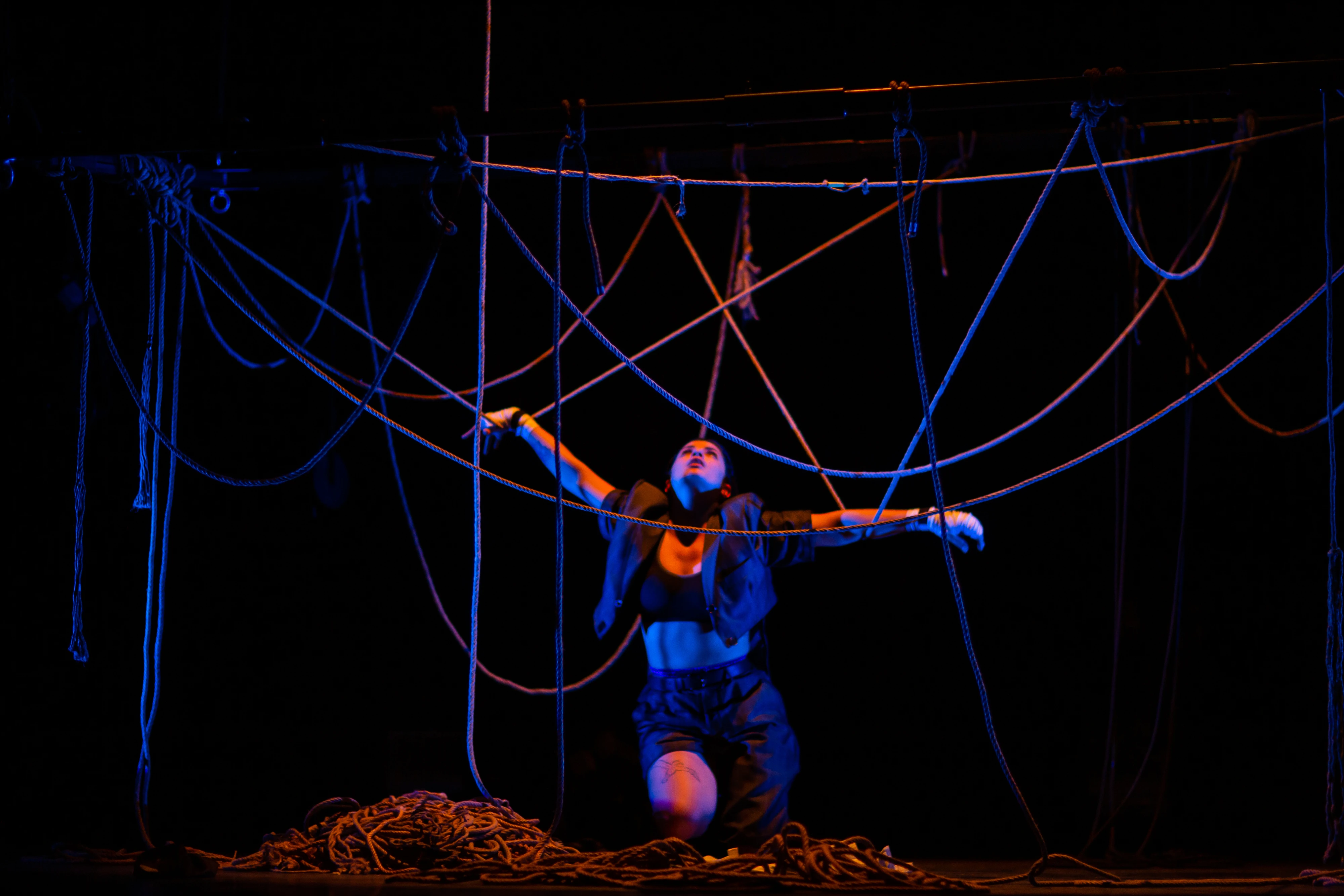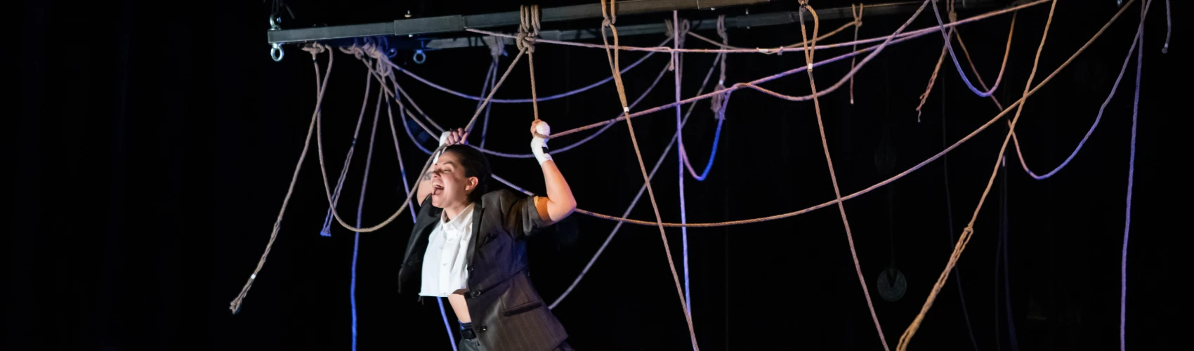 L’écriture franche et directe de Mélissa, criant véritablement le dire, m’a tout de suite interpellée. Il y avait, dans l'urgence de son style, la forme déjà claire d'un spectacle en mouvement constant dans laquelle l'action serait le mantra de toute chose. Si pour se défaire de ces emprises qui paralysent, il faille agir ; il fallait une mise en scène dans laquelle la comédienne deviendrait la cheffe d'orchestre d'absolument tout. Cette volonté d'action, qu'il faut parfois bien souvent réapprendre pour s’extirper de situations emprisonnantes, est à elle-seule déjà une des clés de la Métanoïa. Et c'est avec des explorations physiques flirtant avec la danse et le cirque qu'elle se dessinera sur scène. À la douleur des violences, Métanoïa répond par la douceur des voiles. Parce qu’il faut prendre le large pour voir la lumière.